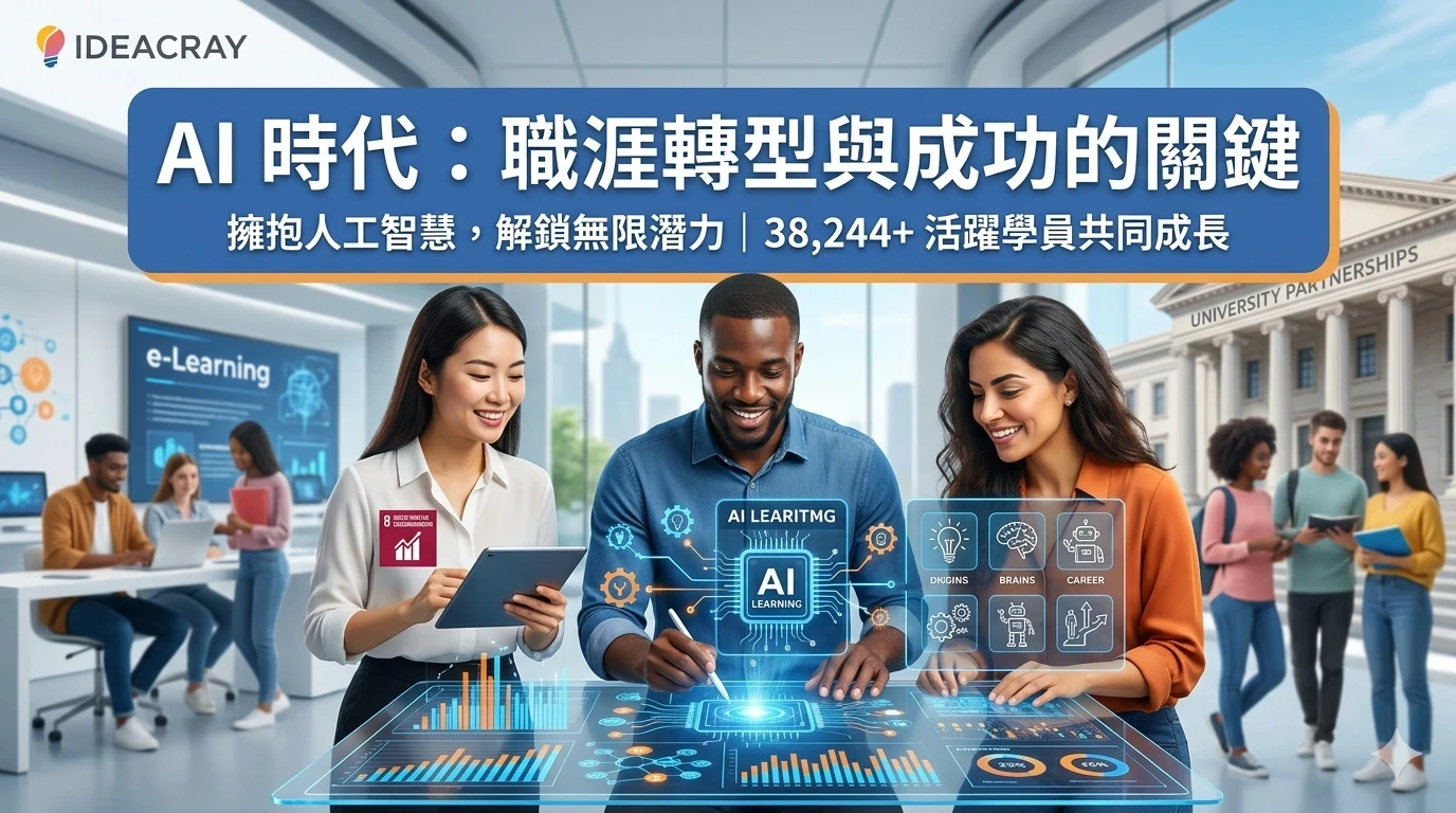 IdeaCray 是全球領先的培訓平台,致力於幫助職場專業人士與在校學生在人工智慧時代脫穎而出。在快速變遷的就業市場中,我們填補了傳統教育與高需求科技技能之間的鴻溝,確保每個人都不會在自動化浪潮中被淘汰。